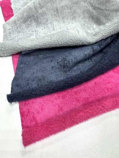 Футер Барашек имеет гладкую, хлопковую лицевую сторону. С изнанки ворс напоминает шерсть барашка. Не пилингуется с обоих сторон. Теплый, легкий, мягки