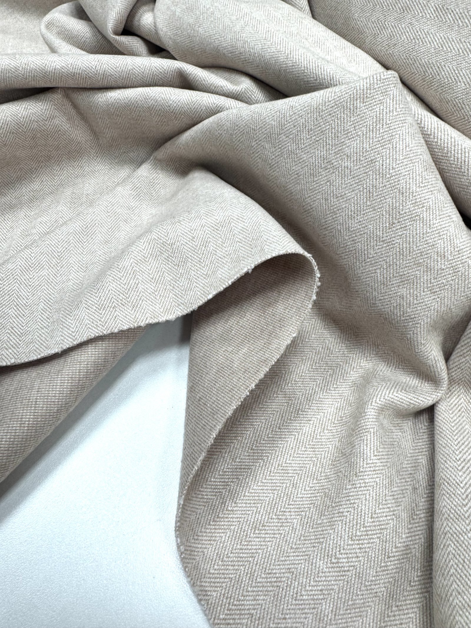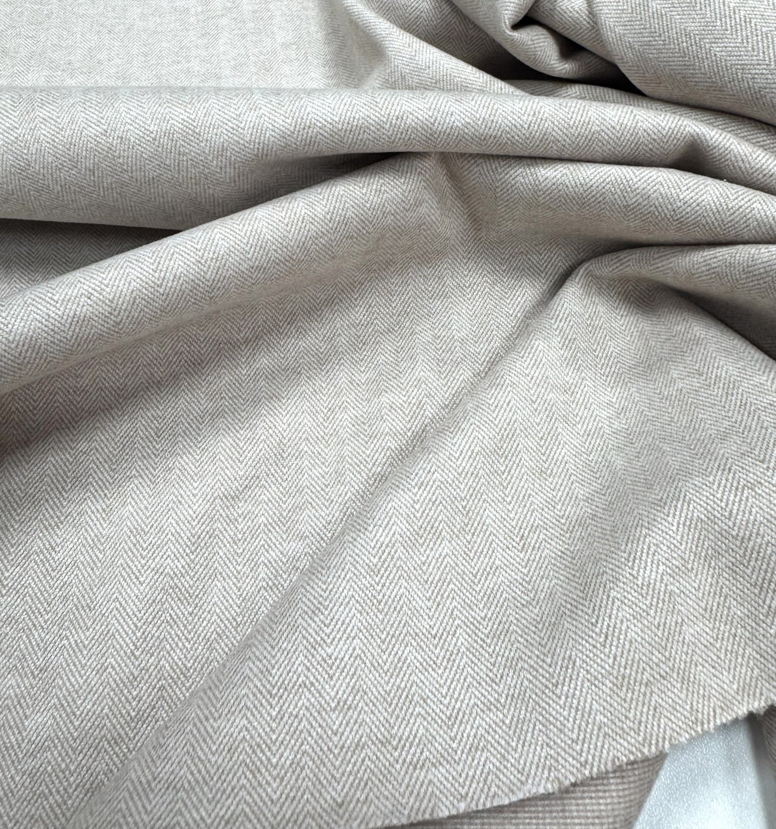 Ткань для пошива трикотажных костюмов с узором елочка представлена в бежевом цвете и состоит из смеси вискозы, нейлона и спандекса. Этот материал отличается высоким качеством, хорошей эластичностью и прочностью. Он подходит для пошива стильных и комфортных костюмов, которые будут выглядеть элегантно и оригинально.