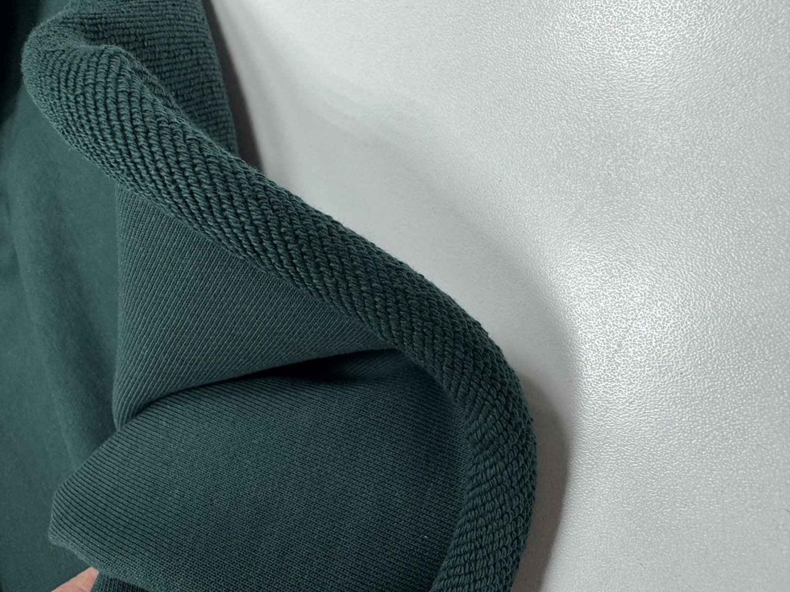 Футер имеет гладкую поверхность с лицевой стороны, мягкие диагональные петельки на изнанке. Полотно тонкое и гибкое, повышенной плотности, не растяжимо, хорошо держит форму. Ткань мягкая и приятная наощупь. Подойдет для пошива уютных худи, свитшотов, костюмов, платьев